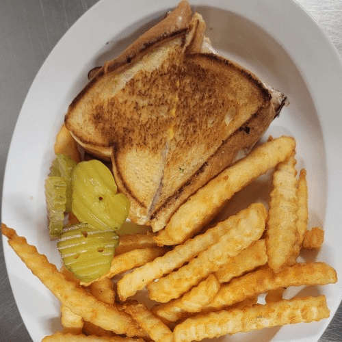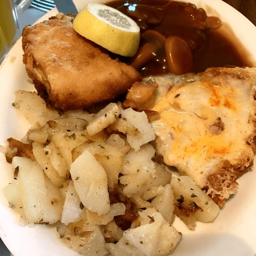 Breaded pork tenderloin, pan fried, topped off with a fried egg