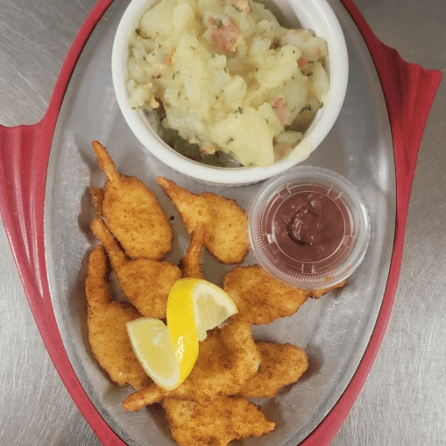 Fried or broiled, served with salad, choice of potato, rolls and butter