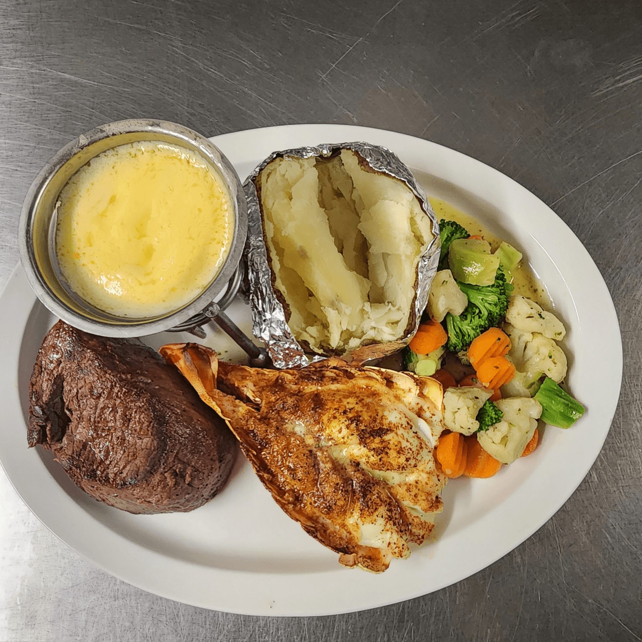With drawn butter, served with salad, choice of potato, rolls and butter